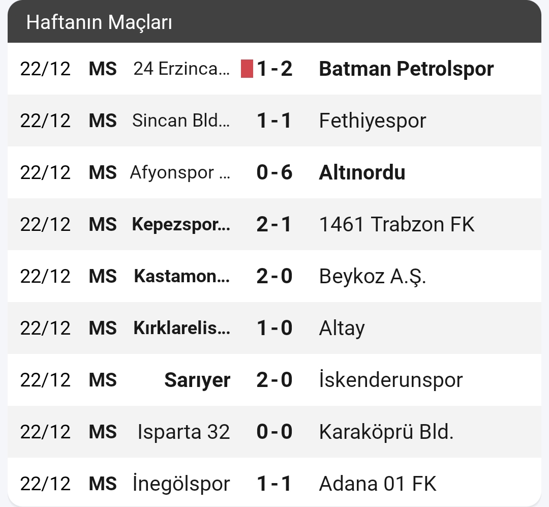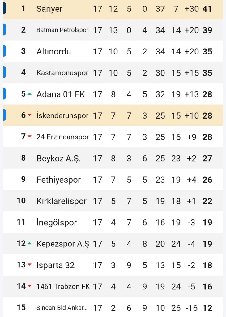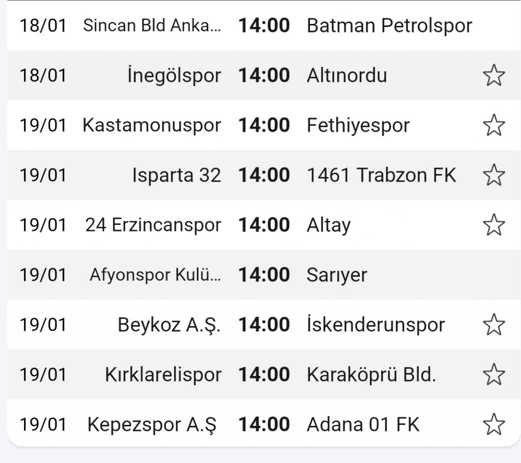 2. Yarının ilk karşılaşması 19 Ocak tarihinde Afyonspor ile deplasmanda oynanacak.