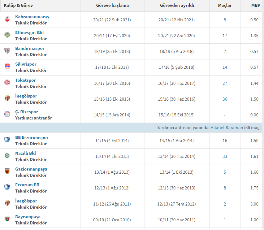 Çalıştırdığı kulüpler
